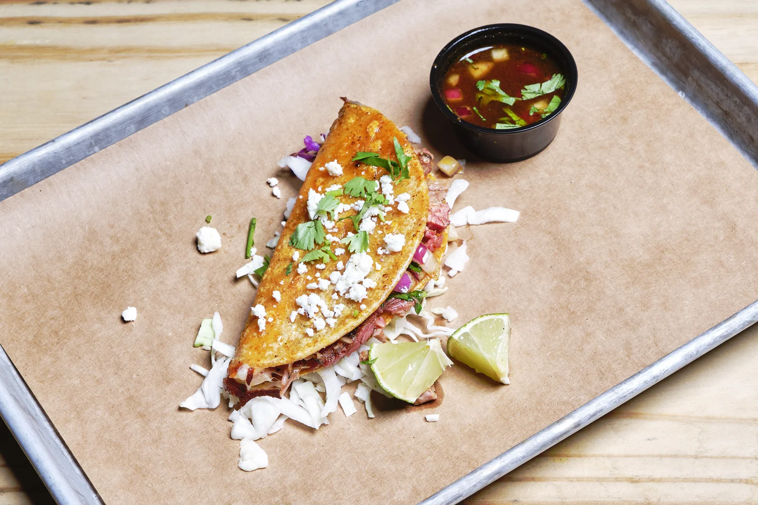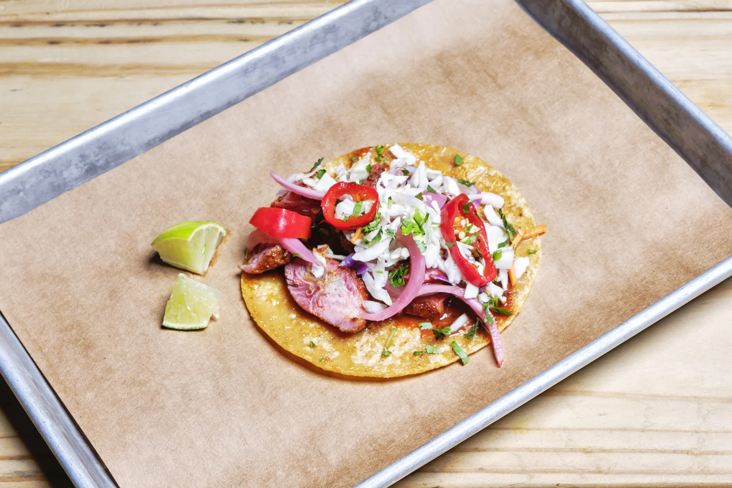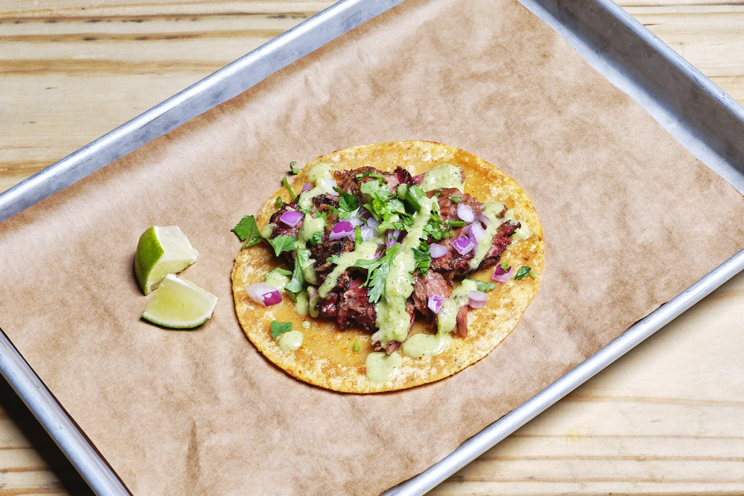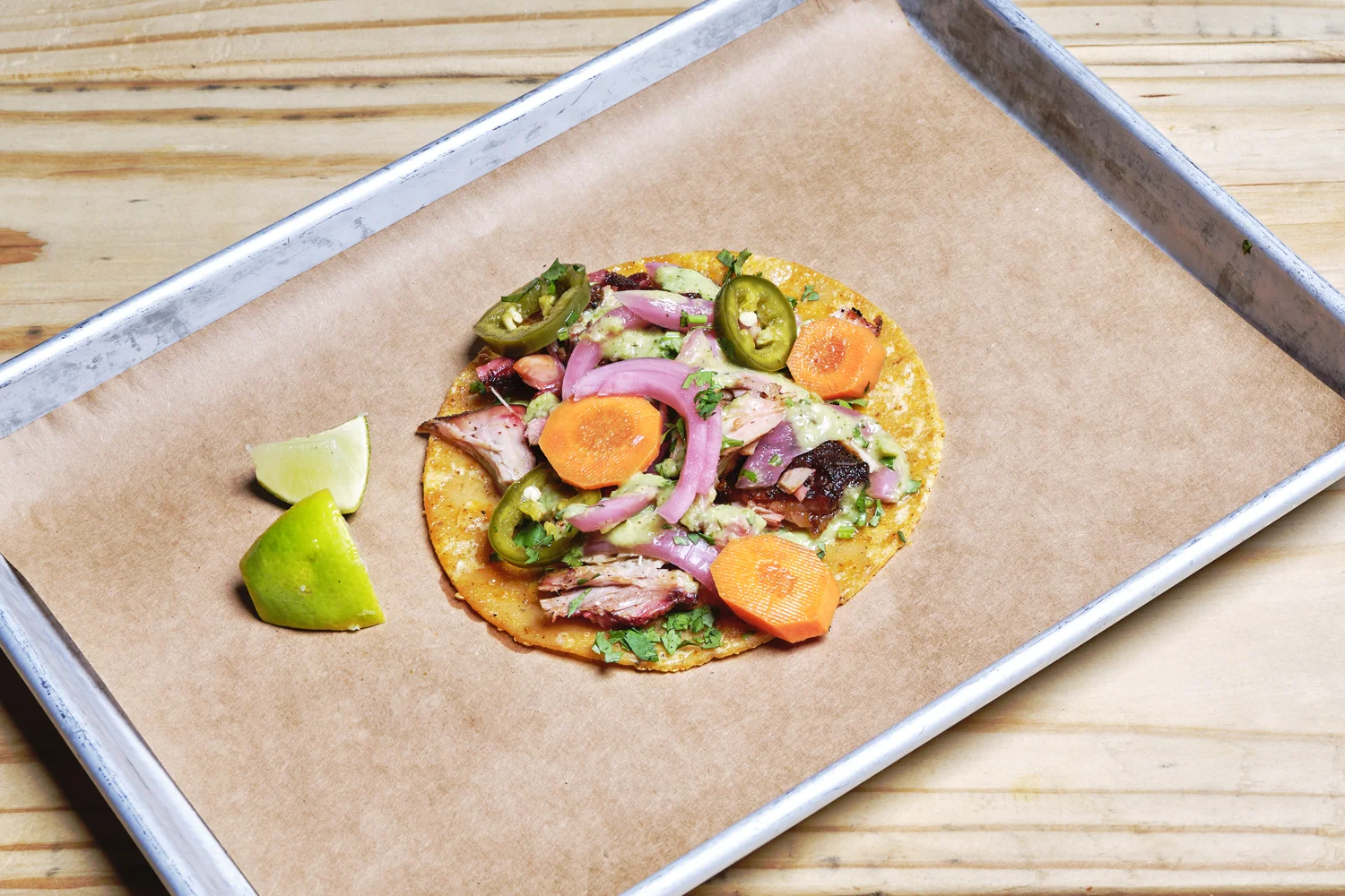 Our Texas-style creation served on corn tortillas with pickled red onion, pickled mustard seeds, cilantro, salsa and pickled red jalapeño. A unique showcase of our boundary-pushing barbecue.